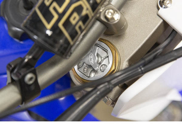 We're thrilled to introduce brand-new Compression Adjuster Set to our suspension accessories lineup, all crafted to help you save time. Adjust your fork compression settings quickly for optimal feel on the track or trail with minimal downtime. The Motion Pro Compression Adjuster Sets install easily on your existing KYB AOS SSS fork cap without requiring any modifications to the cap. A non-marring clamp-on design allows the adjuster to be easily installed or removed during fork service.
