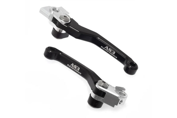 AS3 Performance flexible and adjustable front brake and clutch levers. Manufactured from high-strength aluminum, forged and then CNC machined to guarantee a long life service and a precise fit. The pivot design allows the levers to fold outwards on impact preventing them from breaking or bending. The levers are also have an adjustable reach allowing you to set them at a distance to suit the rider. Anodized, with grey AS3 Performance logo for that factory look.